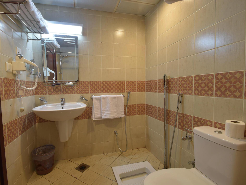 The hotel offers 24-hour front desk service, free Wi-Fi in public areas, elevators, and daily housekeeping. Guests can enjoy an on-site restaurant serving a variety of meals. Each room is air-conditioned and comes equipped with a flat-screen TV with satellite channels, a minibar fridge, a private bathroom with shower, hairdryer, and free toiletries.