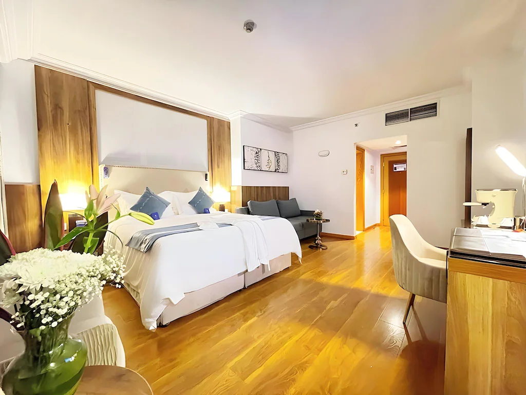 The hotel features a 24-hour front desk, elevator access, complimentary Wi-Fi in public areas, and a welcoming lounge area for relaxation. Each room is air-conditioned and equipped with a flat-screen TV, mini fridge, electric kettle, wardrobe, and a private bathroom with shower, fresh towels, and essential toiletries.