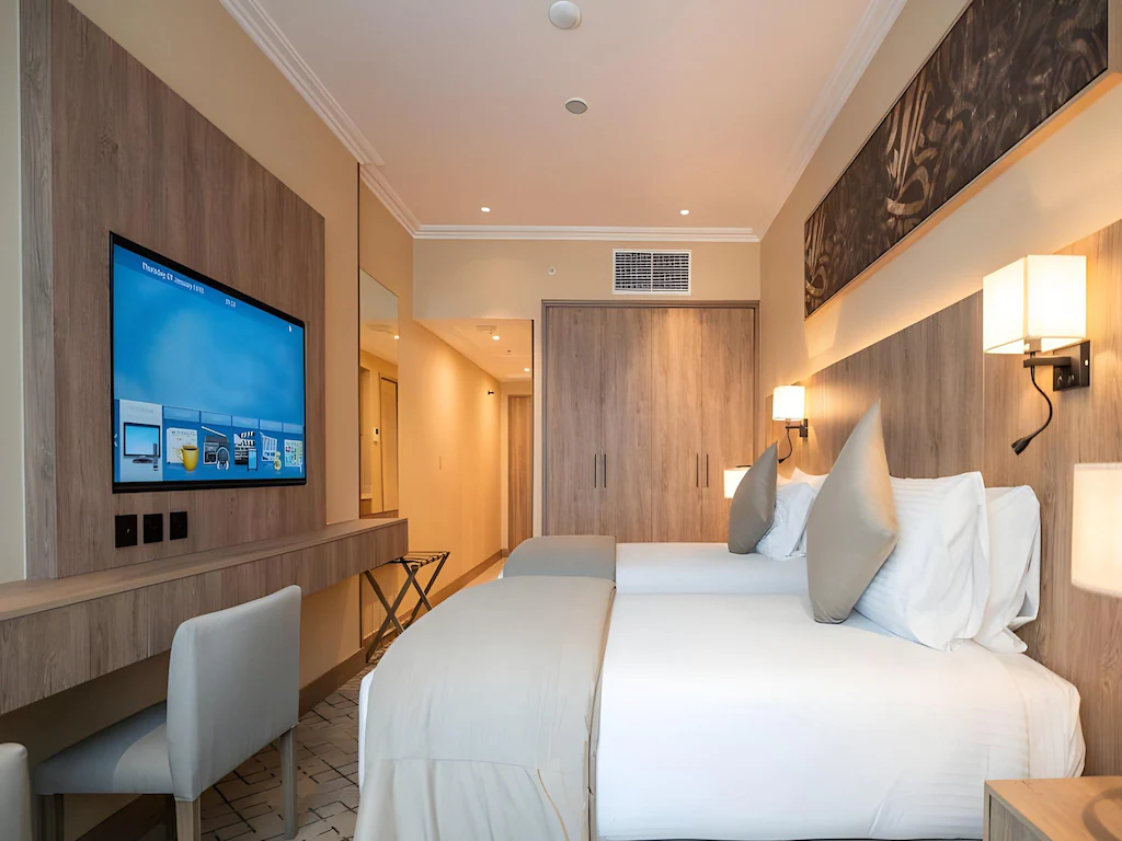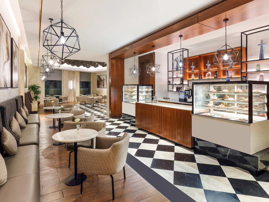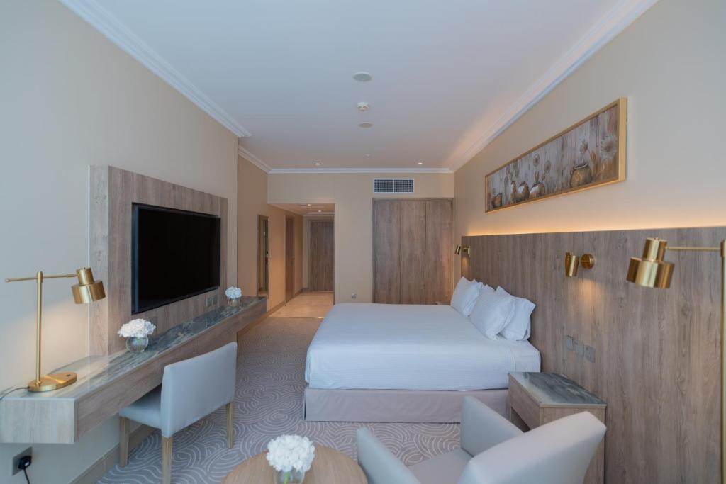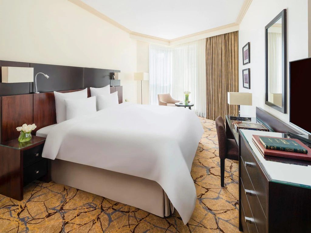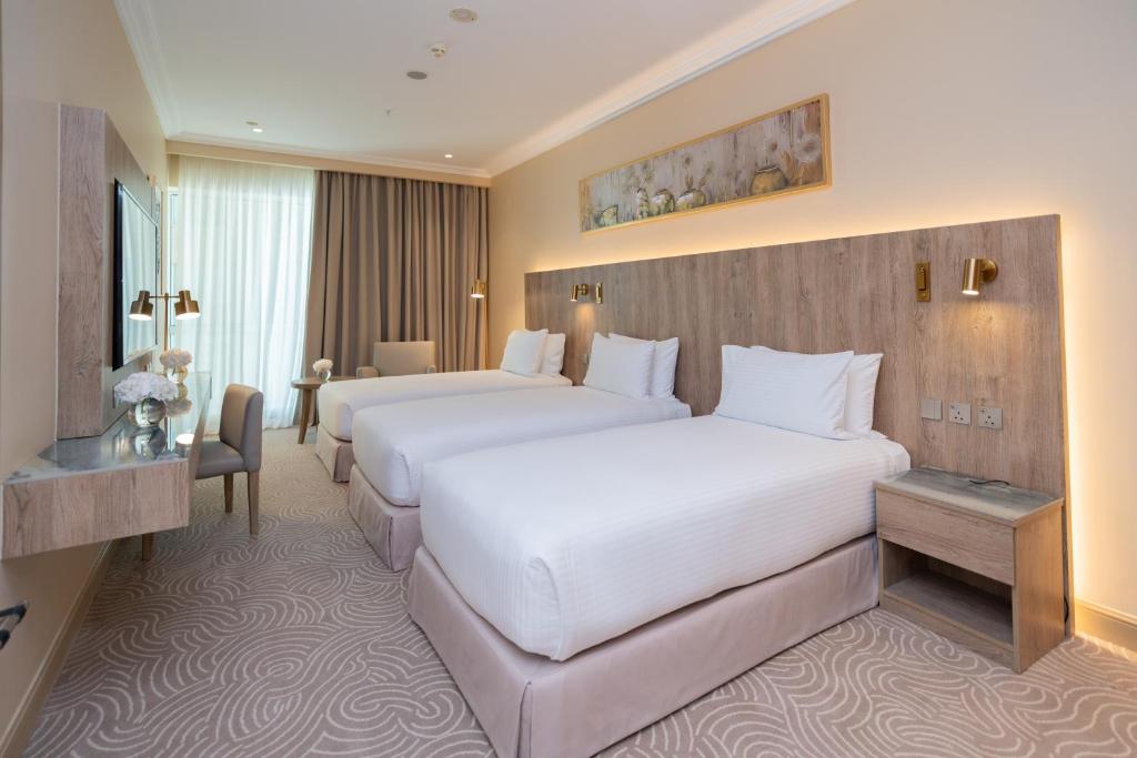 A lavish buffet breakfast is served daily, and guests can choose from a range of international and Middle Eastern dishes at the hotel’s restaurants. Mövenpick also provides business facilities, prayer areas, and concierge services for added convenience.