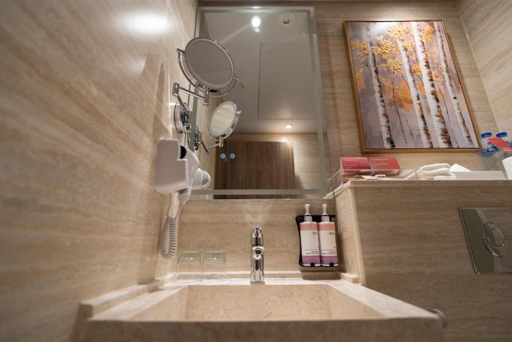 The hotel offers spacious rooms and suites, each air-conditioned and equipped with a flat-screen TV with satellite channels, minibar, tea/coffee maker, and a safety deposit box. Private bathrooms include a shower or bathtub, hairdryer, and complimentary toiletries to ensure a relaxing stay.