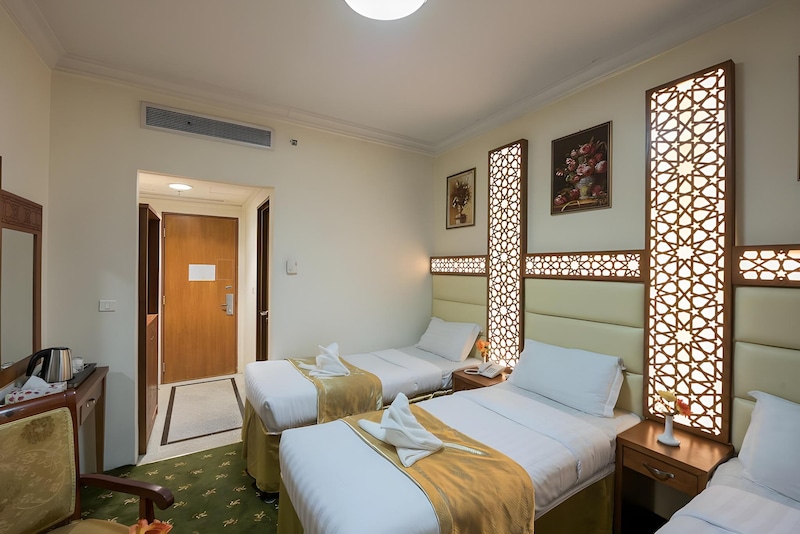 A daily continental breakfast is served at the hotel to start your day with energy. Rawdat Al Mukhtara Hotel is ideally located for visitors to the Prophet’s Mosque, with nearby shopping and dining options. Prince Mohammad bin Abdulaziz International Airport is approximately 14 km away from the property.